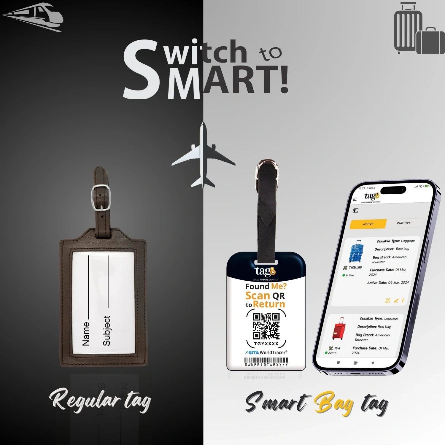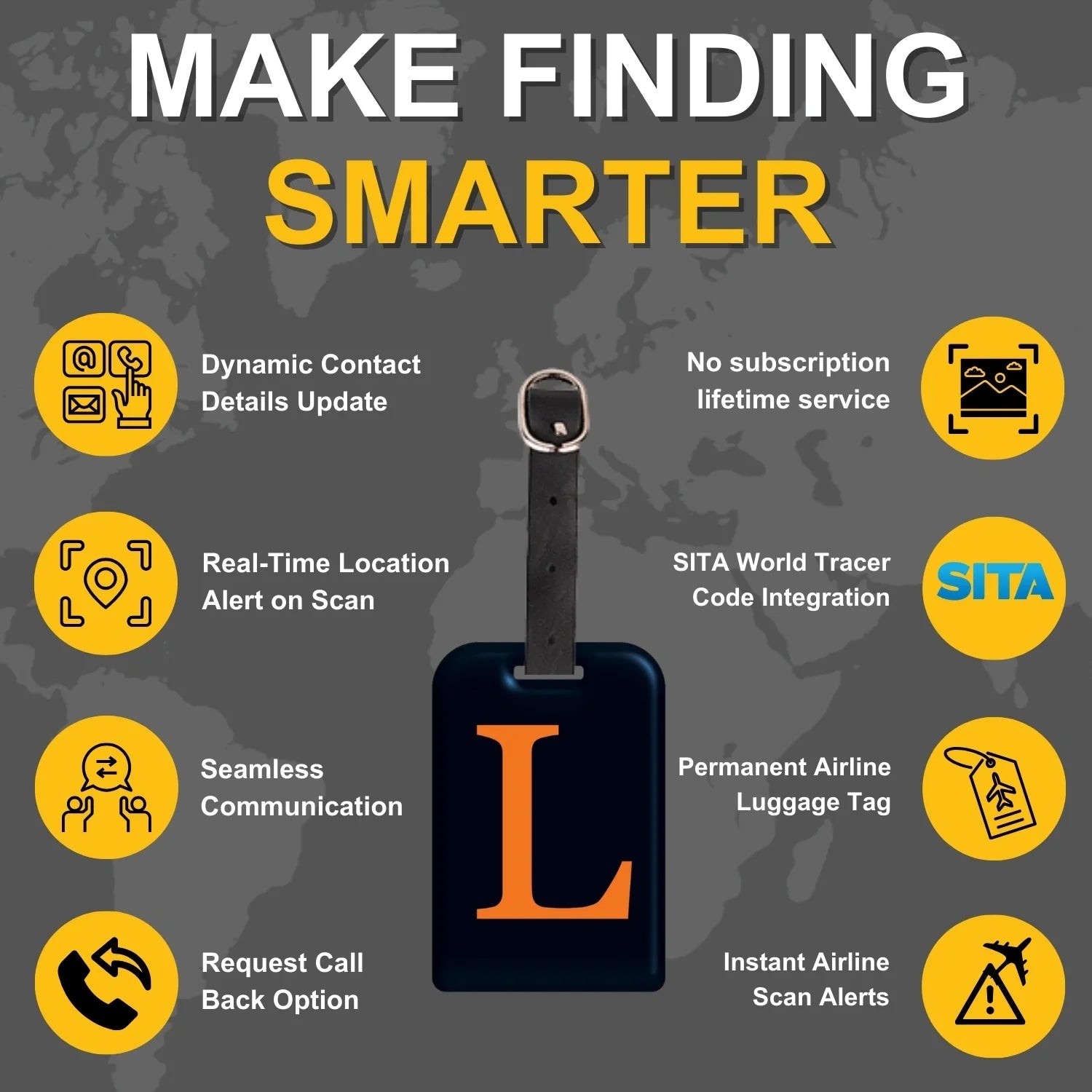 - [Stay in Control of your bags] Update your contact details online anytime, even after your bag is lost, for peace of mind. Relevant both in and outside airline systems, perfect for local travels, and smarter than a name tag - all with no subscription fees!